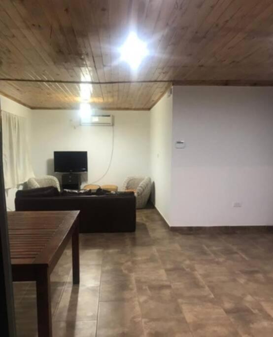 Esta casa o chalet de 1 dormitorio tiene aire acondicionado y cuenta con zona de estar, TV de pantalla plana y cocina con nevera.